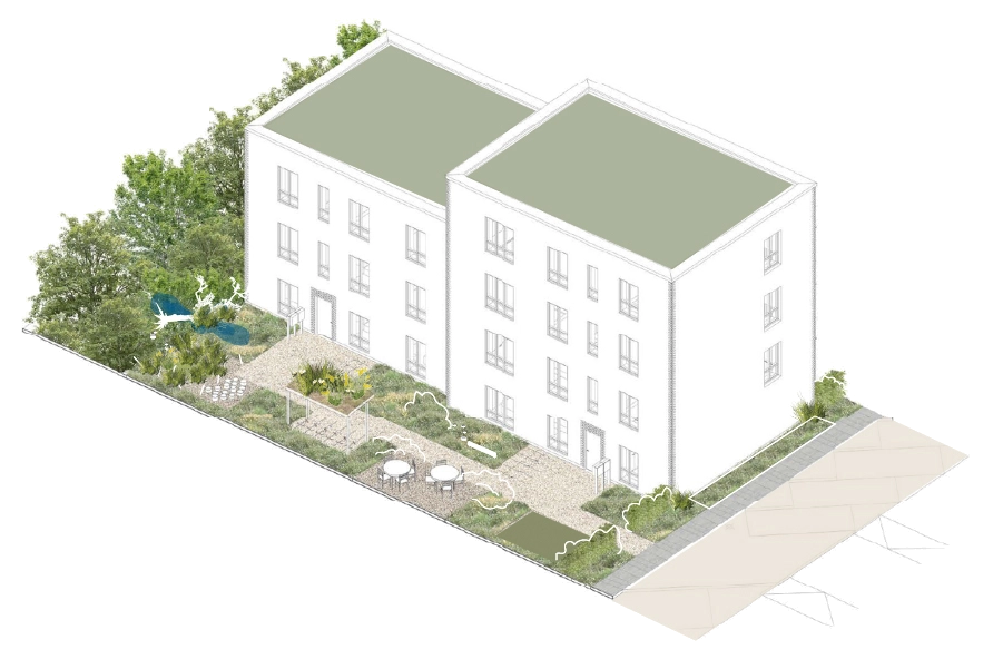 Med sit fokus på at skabe levende udendørsrum og støtte op om områdets naturlige karakter bidrager Maias Vænge til en fremtidssikret, grøn bydel, hvor natur og boligliv mødes.